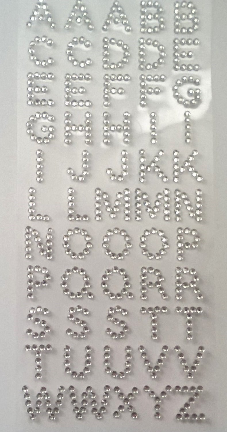 55 Alphabet Letters on each rhinestone sheet, Stones are approx. 3mm in size.